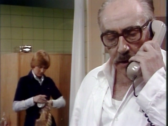 A műtő diszpécserhölgye odahaza hívja Blazejt, ami a telefont felvevő feleséget meglepi egy kissé, ő ugyanis abban a hitben volt, hogy ezen éjjelen a férje a szolgálatot ellátó orvos a traumatológián (mi már tudjuk, hogy Strosmajer az.) Blazejovában felébred a féltékenység ördöge és Blazej doktor érintő apróbb infók kibökésére ösztökélné a diszpécserhölgyet aki viszont rutinosan lepattintja. Blazej, Blazej, te nem először csinálhatsz ilyet! A nej kétségbeesetten szorítja magához az összetéveszthetetlen KGST-tervezésű szürke telefonkagylót, és tárcsázza a traumatológiát.